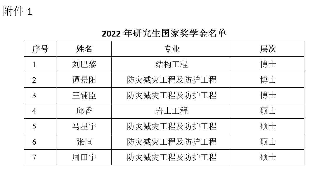 根據《中國地震局工程力學研究所研究生國家獎學金評審辦法》《中國地震局工程力學研究所研究生學業獎學金管理暫行辦法》等有關要求,我所開展了2022年度國家獎學金、博士研究生第二、三、四學年學業獎學金評選工作,現將評選結果進行公示。公示期2022年10月25日至2022年10月31日。如有異議,請以書面形式向研究生管理辦公室具名提出。