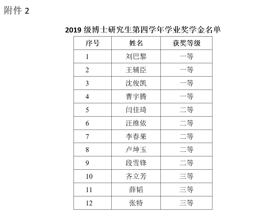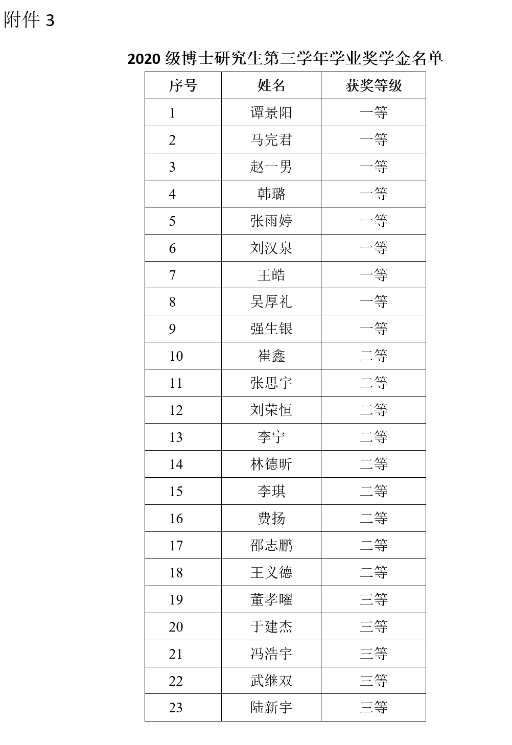 關于2022年度國家獎學金、博士研究生第二、三、四學年學業獎學金評選結果的公示