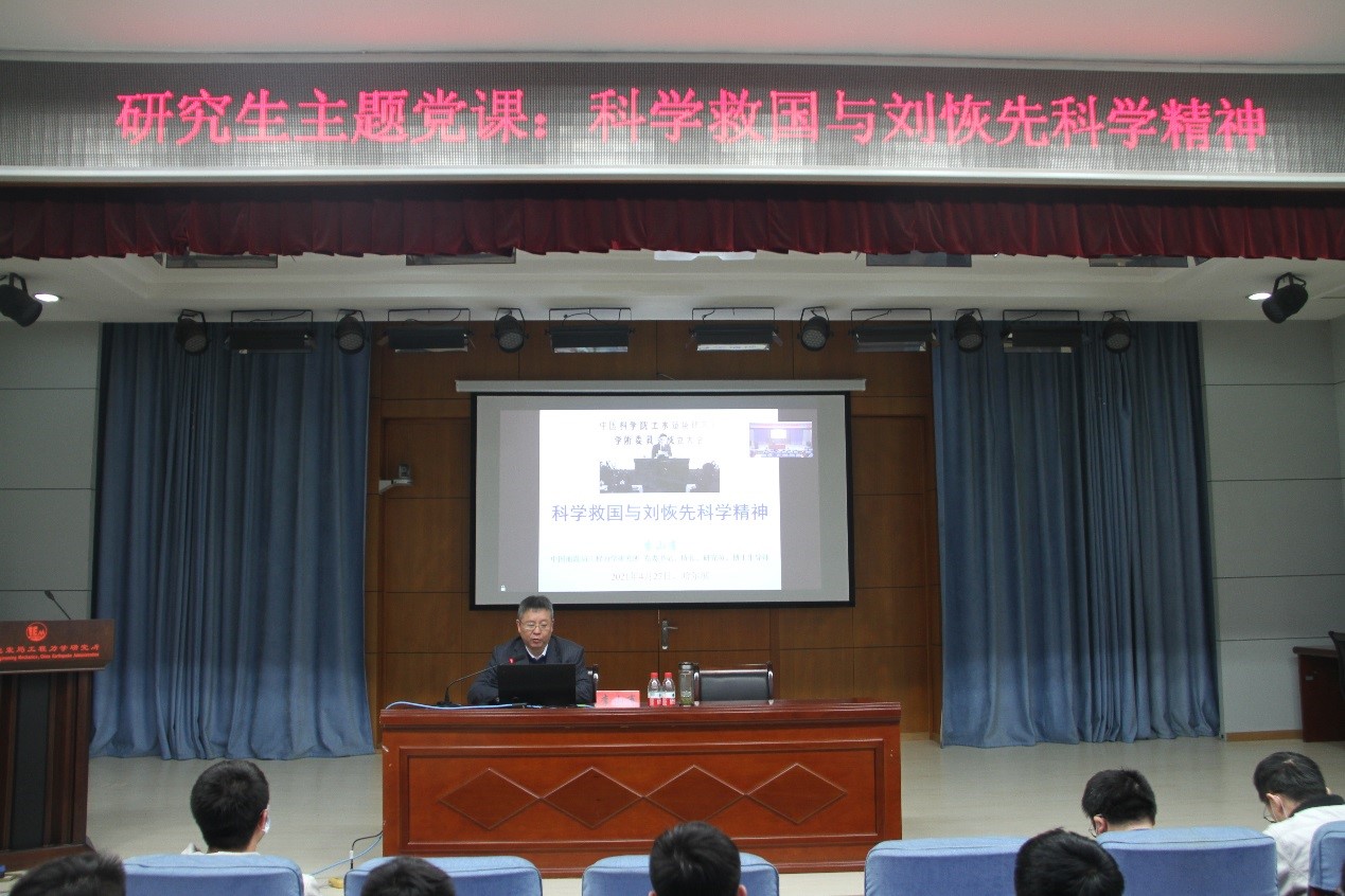 發(fā)布時間: 2021-04-28 點擊數(shù)量:5326在“五四青年節(jié)”來臨之際,工力所黨委書記、所長李山有同志,為工力所全體研究生和青年干部做“科學(xué)救國與劉恢先科學(xué)精神”專題黨課,為全體研究生講第一堂思想政治課,與全所青年干部和學(xué)生共同慶祝第102個五四青年節(jié)。工力所全體在讀研究生、青年理論小組成員近200人參加會議。