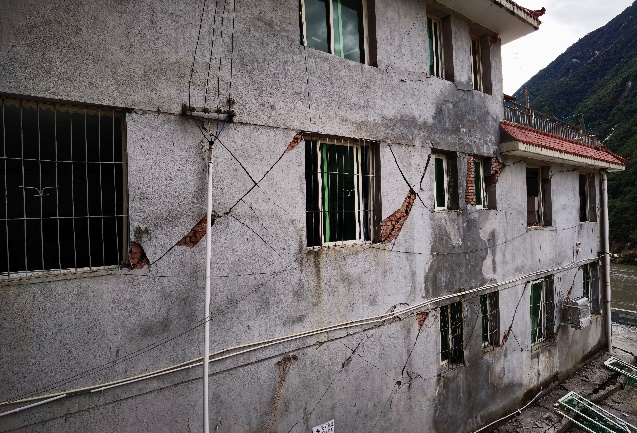 圖4 王崗坪彝族藏族鄉田灣衛生院(磚混結構、承重墻開裂歪閃、窗間墻出現明顯X裂縫)