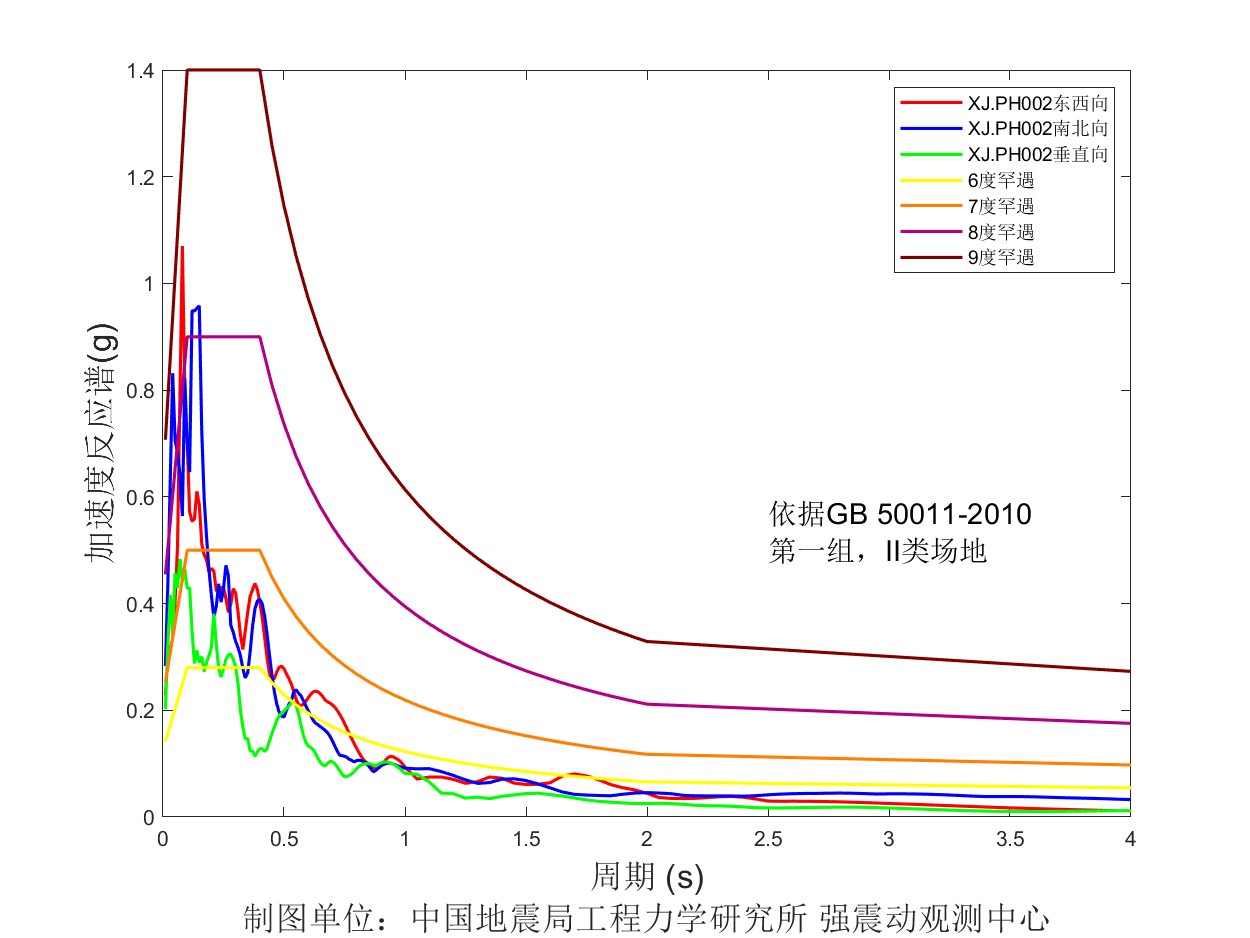 圖7 XJ.PH002臺(tái)加速度反應(yīng)譜圖