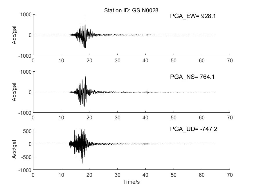 圖7 GS.N0028臺(tái)加速度時(shí)程曲線圖
