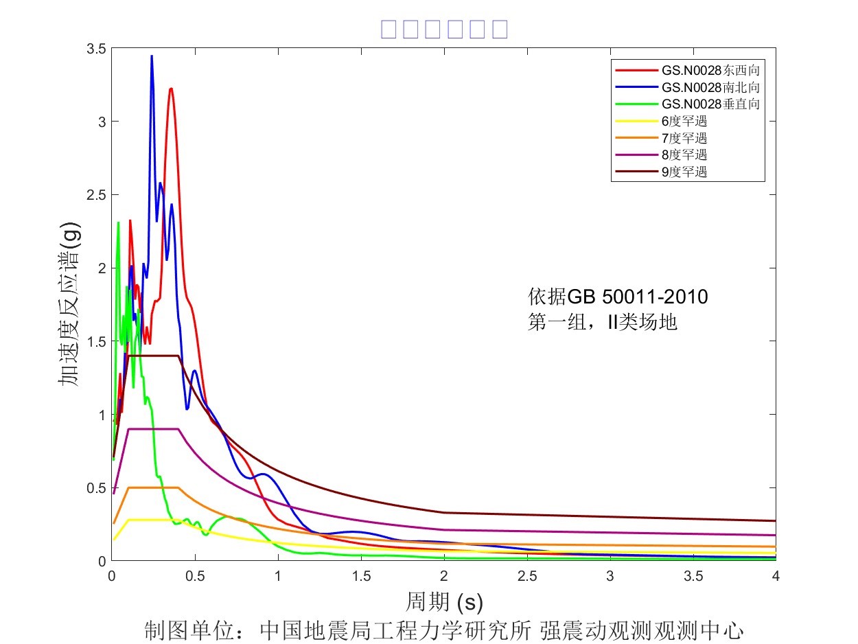 圖11 GS.N002B臺(tái)加速度反應(yīng)譜圖