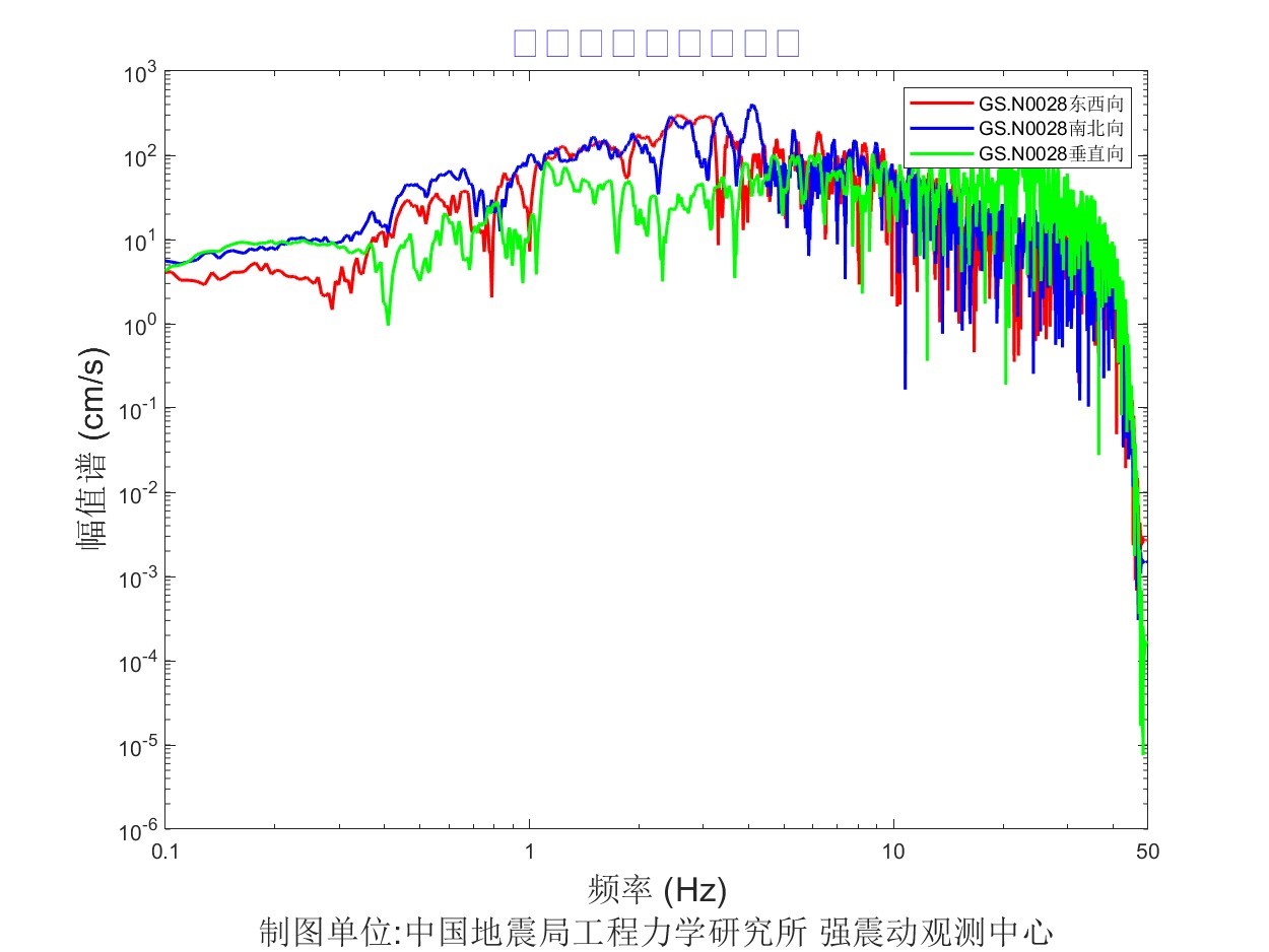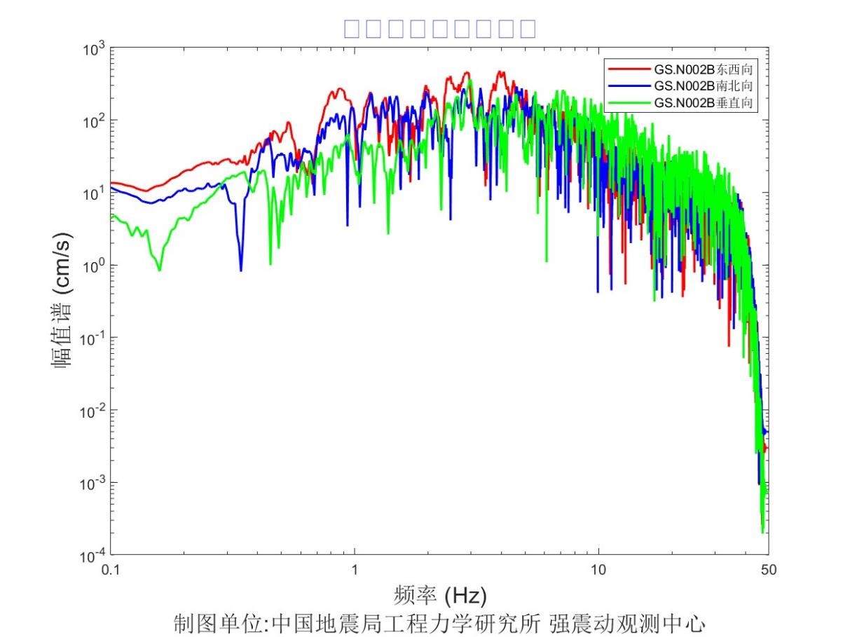 地震后工力所強(qiáng)震動(dòng)觀測(cè)中心共收取距震中100公里范圍內(nèi)實(shí)時(shí)強(qiáng)震儀記錄57組、烈度儀記錄182組。中心立即組織人員進(jìn)行處理。獲取記錄臺(tái)站加速度記錄分析結(jié)果見表1,其中GS.N0028 臺(tái)烈度最大,其震中距為13.6km,東西、 南北、 垂直向加速度峰值分別為 905.8cm/s2、778.5cm/ s2、-702.4cm/ s2,東西、南北、垂直向速度峰值分別為57.3cm/s、-52.1cm/s、-16.3 cm/s,計(jì)算儀器地震烈度9.5度。GS.N002B 臺(tái)峰值加速度最大,其震中距為12.3km,東西、 南北、 垂直向加速度峰值分別為 1071.4cm/s2、856.8cm/ s2、796.1cm/ s2,東西、南北、垂直向速度峰值分別為-30.7cm/s、-21.5cm/s、-10.1 cm/s,計(jì)算儀器地震烈度9.2度。GS.N0027臺(tái)震中距最小,其震中距為5.8km,東西、南北、垂直向加速度峰值分別為823.9cm/s2、-533.3cm/ s2、 692.7cm/ s2,東西、南北、垂直向速度峰值分別為-39.8cm/s、-28.9cm/s、-11.3 cm/s,計(jì)算儀器地震烈度8.8度。儀器地震烈度分布圖見圖1,地震峰值加速度分布圖見圖2,地震峰值速度分布圖見圖3,地震加速度反應(yīng)譜(T=0.3s、T=1.0s、T=3.0s)分布圖見圖4、圖5、圖6,GS.N0028 臺(tái)強(qiáng)震動(dòng)記錄見圖7,GS.N0028臺(tái)加速度反應(yīng)譜見圖8,GS.N0028臺(tái)傅里葉幅值譜見圖9,GS.N002B臺(tái)強(qiáng)震動(dòng)記錄見圖10,GS.N002B臺(tái)加速度反應(yīng)譜見圖11,GS.N002B臺(tái)傅里葉幅值譜見圖12,GS.N0027臺(tái)強(qiáng)震動(dòng)記錄見圖13,GS.N0027臺(tái)加速度反應(yīng)譜見圖14,GS.N0027臺(tái)傅里葉幅值譜見圖15。