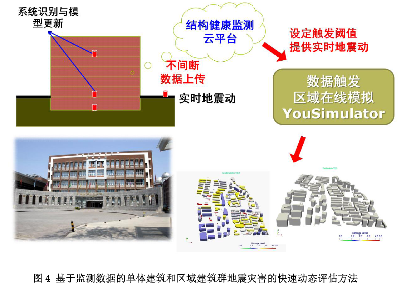 項目集成了新型傳感器、先進的組網技術、秒級計算效率的基于監測數據的單體建筑和區域建筑群地震災害的快速動態評估方法(圖4)等創新性成果,開發了“區域與城市地震監測與風險動態評估系統”(圖5),實現了基于監測數據的公里網格級別的地震災害風險快速動態評估,提升了區域與城市地震災害風險評估的時效性和精度。