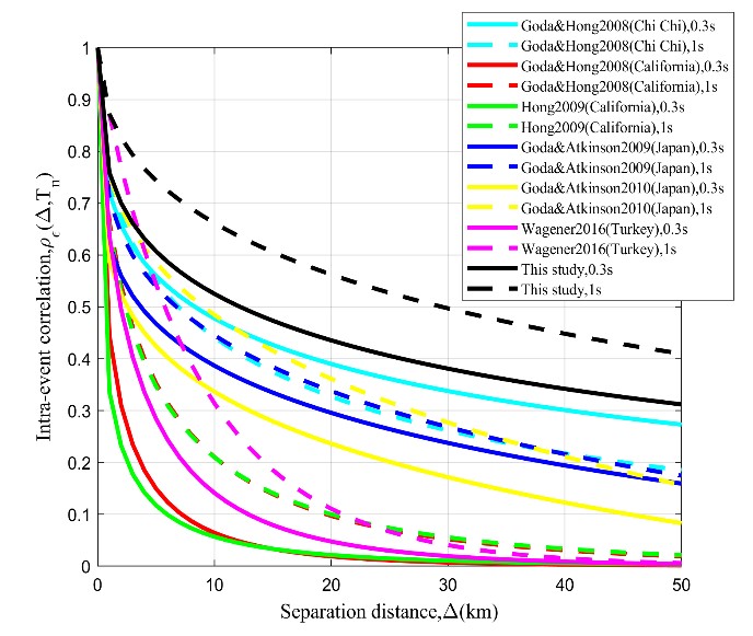 地震危險性分析通常使用地震動預測方程(GMPEs)來確定地震引起的地震動。GMEPs提供對某一地點的地震動及相關變異性的評估,并認為在不同地點的地震動強度(IMs)是獨立的。然而對大跨度橋梁、水電線路及建筑組合的空間分布系統的地震風險評估,需要對同一地震中多個地點同時發生的IMs進行估計和量化。隨著地震災害和風險評估由單一結構向空間分布的建筑和基礎設施轉變,地震動強度的空間相關性引起了地震學和地震工程領域的廣泛關注。忽略空間相關性可能導致損失估計的偏差,高估最可能損失和低估罕見損失。