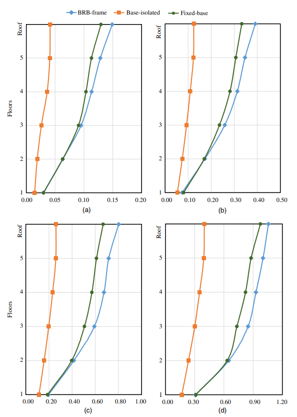 依據FEMA P-58抗震性能評估理論,選擇基于強度的評估方法,對比了普通框架結構、BRB-框架結構、隔震框架結構在四個地震動強度下的結構響應情況及地震性能評估與損失進行了對比評估。