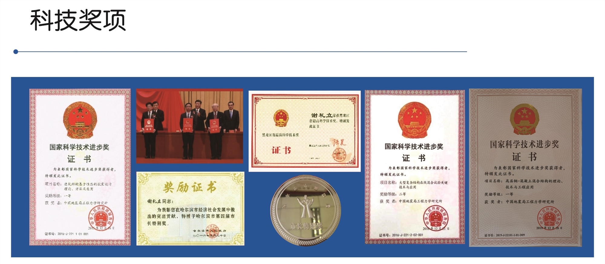 研究所主持了國家973計劃項目(土木工程領(lǐng)域首個)、國家科技支撐計劃項目、國家重點研發(fā)計劃項目、國家自然科學(xué)基金重點項目等一批國家級重要科研項目。牽頭或參與獲得國家科技進步獎23項,省部級科技進步獎勵200余項,其中2015年牽頭獲得國家科技進步一等獎1項、2016年牽頭獲得國家科技進步二等獎1項、2019年參與獲得國家科技進步一等獎1項。