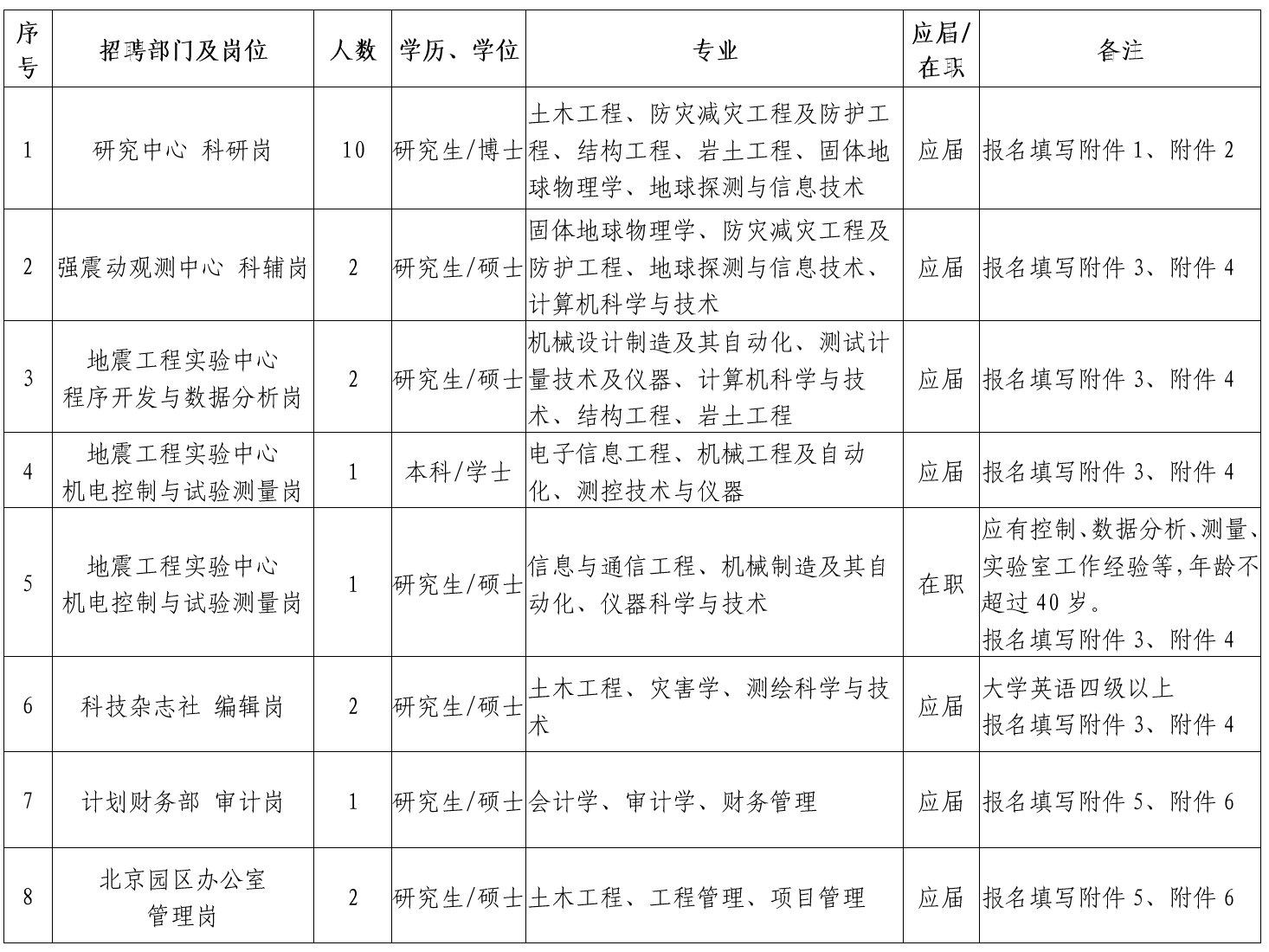 (2)熱愛防震減災(zāi)科研事業(yè),能全職在研究所相關(guān)學(xué)科科研崗位上工作,年齡一般不超過35周歲,科研成果特別突出者,年齡可適當(dāng)放寬。